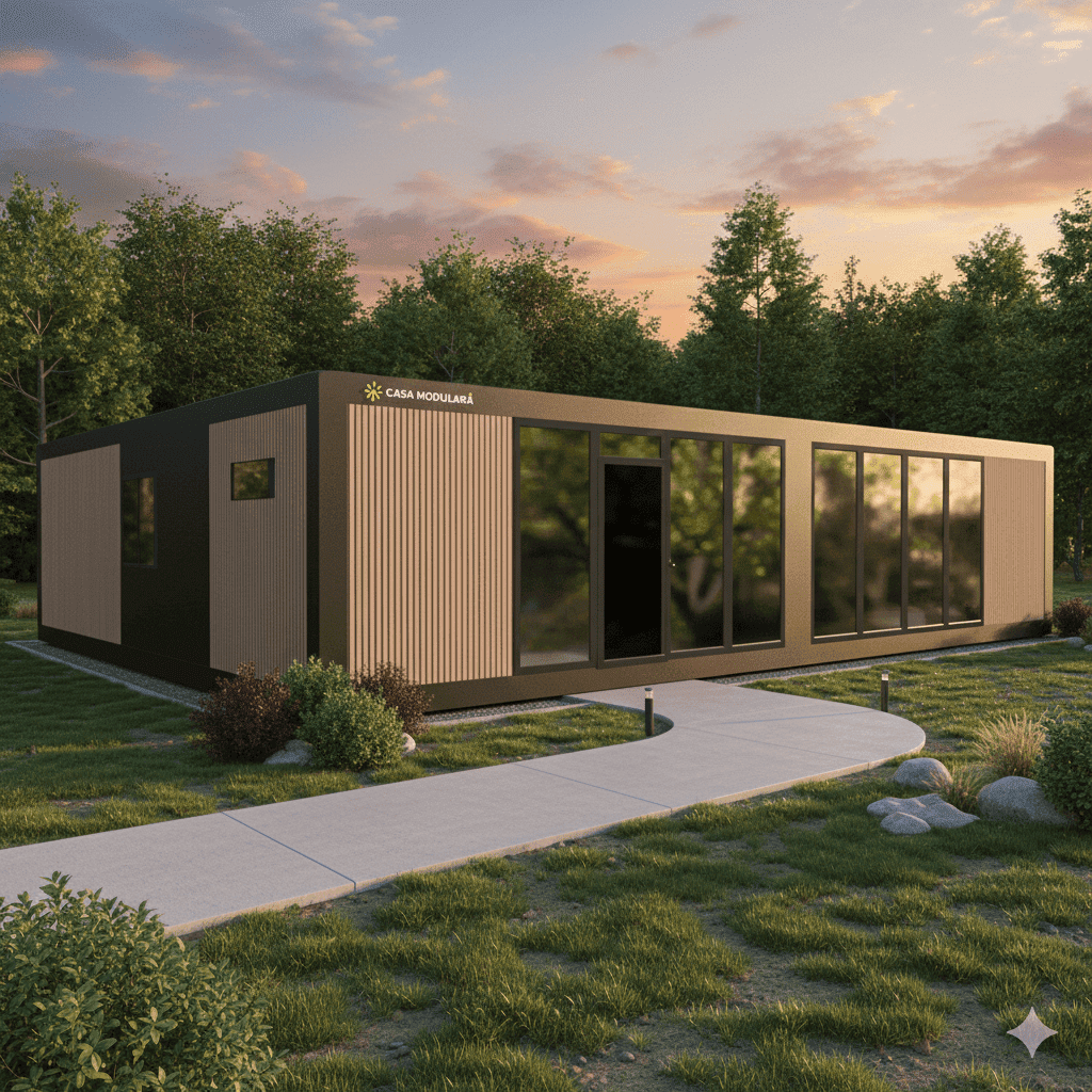 Dimensiuni standard modul: 4 unitati de 6.000 × 2.400 × 2.700 mm (alte dimensiuni la cerere).