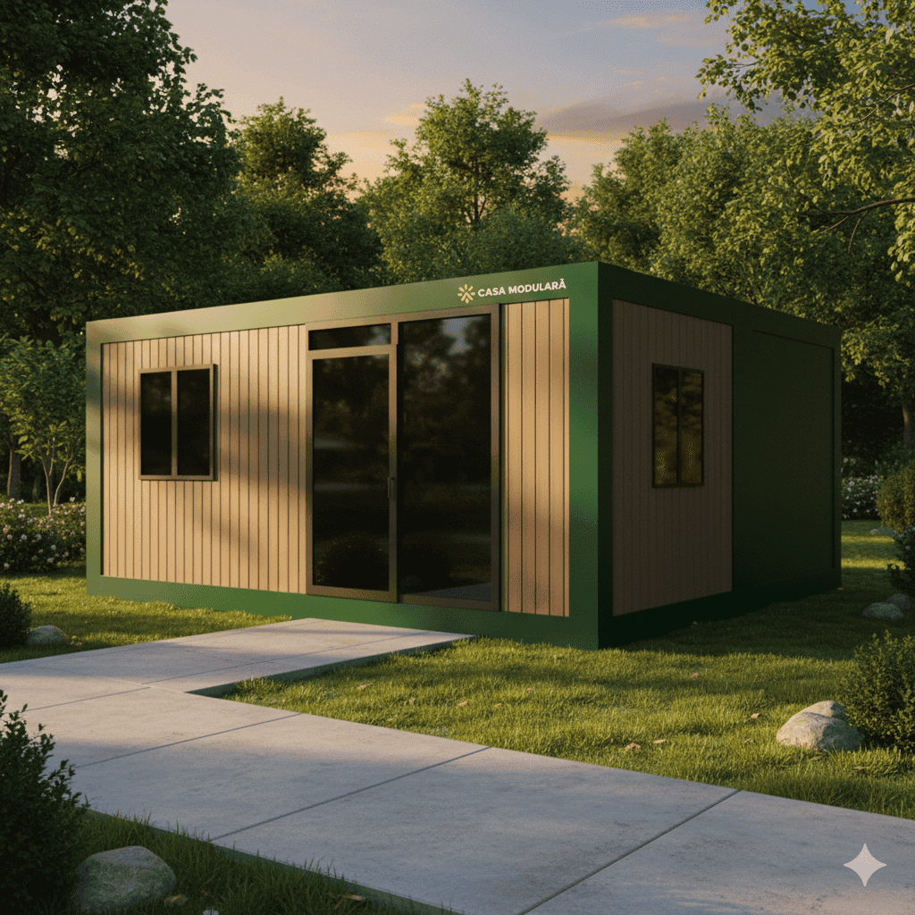 Va urma!Container modular birou 36mp cu grup sanitar – design elegant, riflaj exterior & ferestre largi